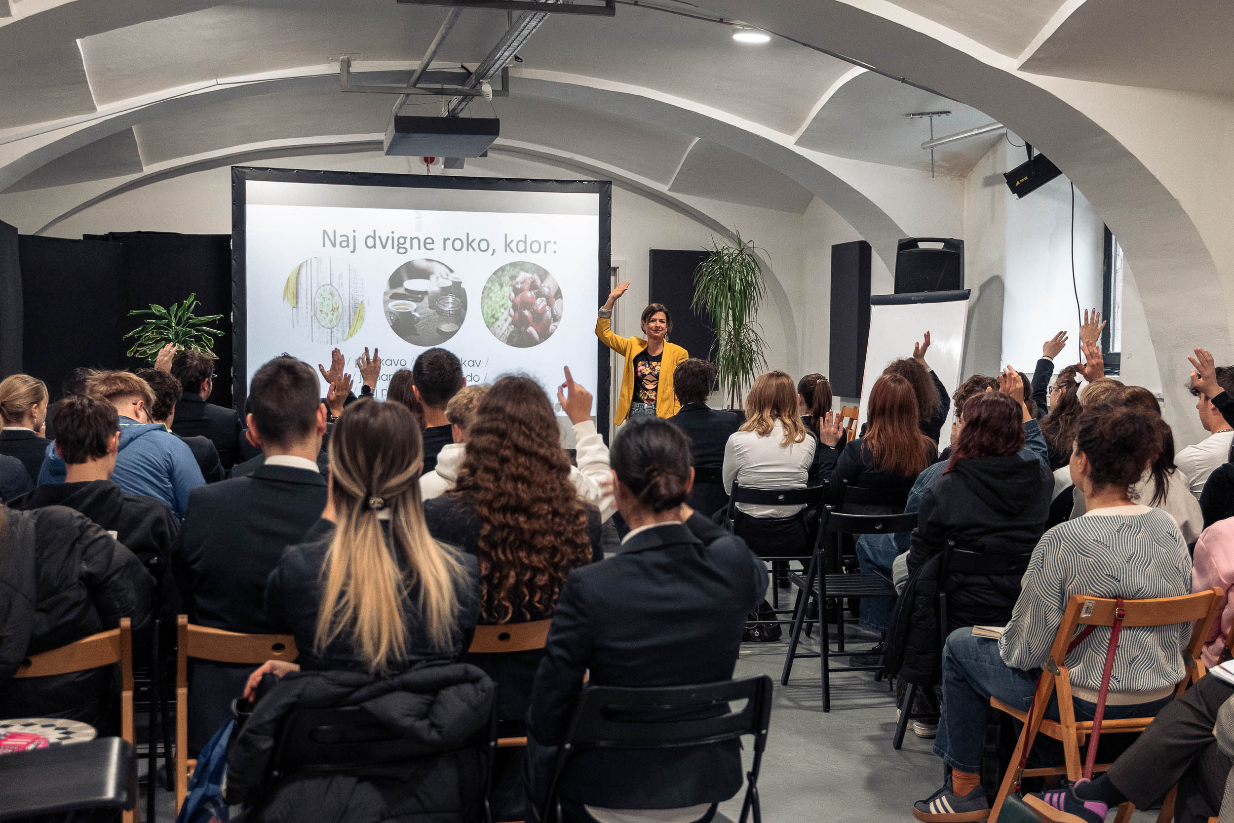 V ponedeljek, 17. novembra 2025, smo z dijaki 2. in 3. letnika gastronomije in turizma sodelovali v ODPRTEM DIALOGU Z MLADIMI: TRAJNOSTNA (PRE)HRANA, ki je potekal v Kulturnem inkubatorju na Koroški c. 18 v Mariboru.