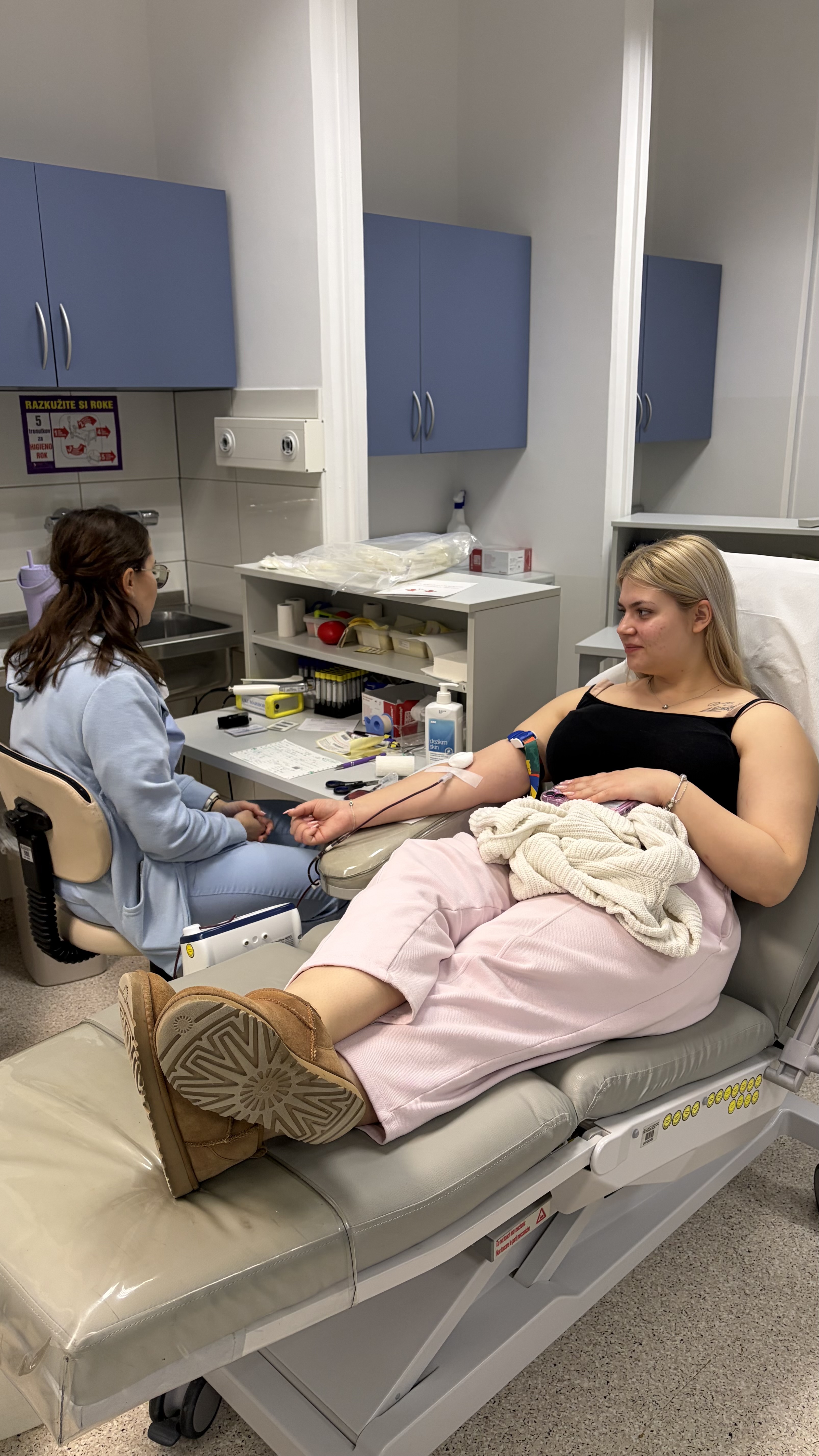 Letos se je krvodajalske akcije, namenjene polnoletnim dijakom in delavcem šole, udeležila tudi naša bivša dijakinja, sedaj sodelavka-pripravnica, sicer redna krvodajalka, ki je poskrbela tudi za avtentične fotografije »s terena«.