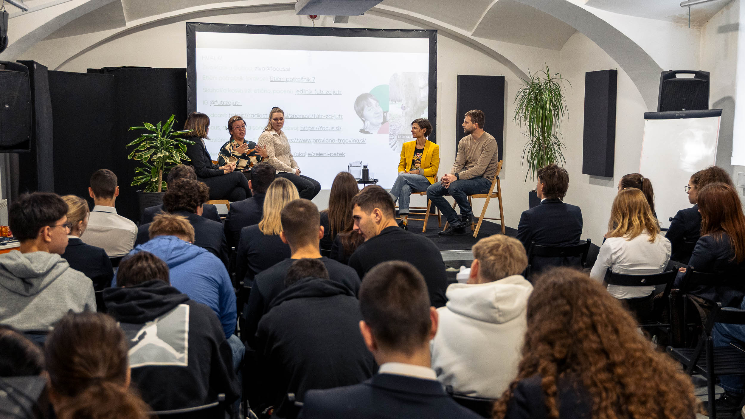 V ponedeljek, 17. novembra 2025, smo z dijaki 2. in 3. letnika gastronomije in turizma sodelovali v ODPRTEM DIALOGU Z MLADIMI: TRAJNOSTNA (PRE)HRANA, ki je potekal v Kulturnem inkubatorju na Koroški c. 18 v Mariboru.